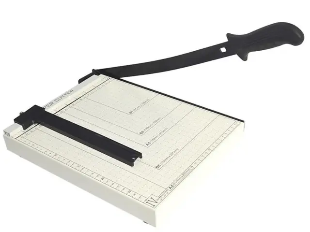 Rezanje papirja še nikoli ni bilo tako enostavno! Zahvaljujoč enostavnemu upravljanju giljotine lahko vsak brez težav razreže papir, vizitke in fotografije za album na ustrezno velikost.