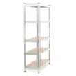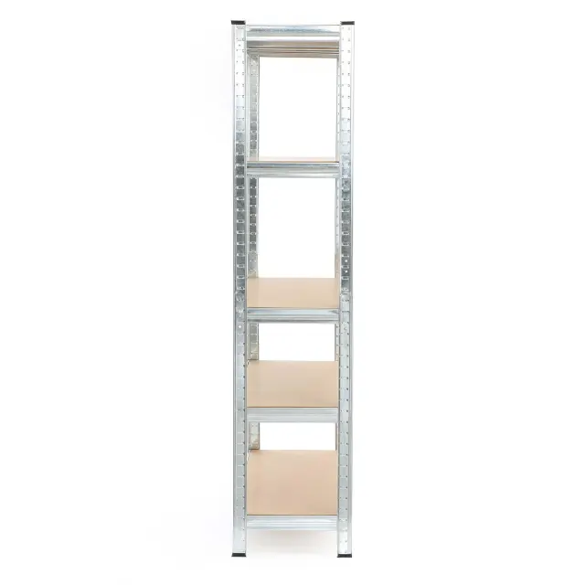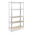 Regal Wiltec za težke obremenitve vam omogoča, da hitro naredite red v delavnici, kleti, skladišču in garaži. Regal je skupnih dimenzij 180 x 90 x 40 cm (DxŠxV) in je opremljen s petimi policami. To so MDF lesno vlaknene plošče z nosilnostjo 175 kg na nivo, kar pomeni skupno nosilnost 875 kg.