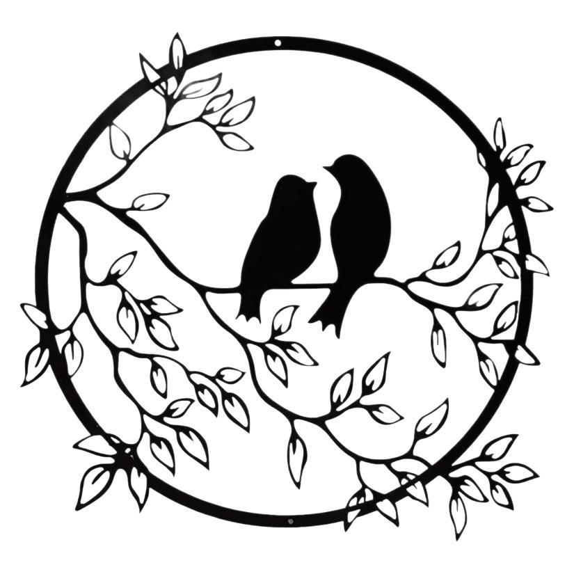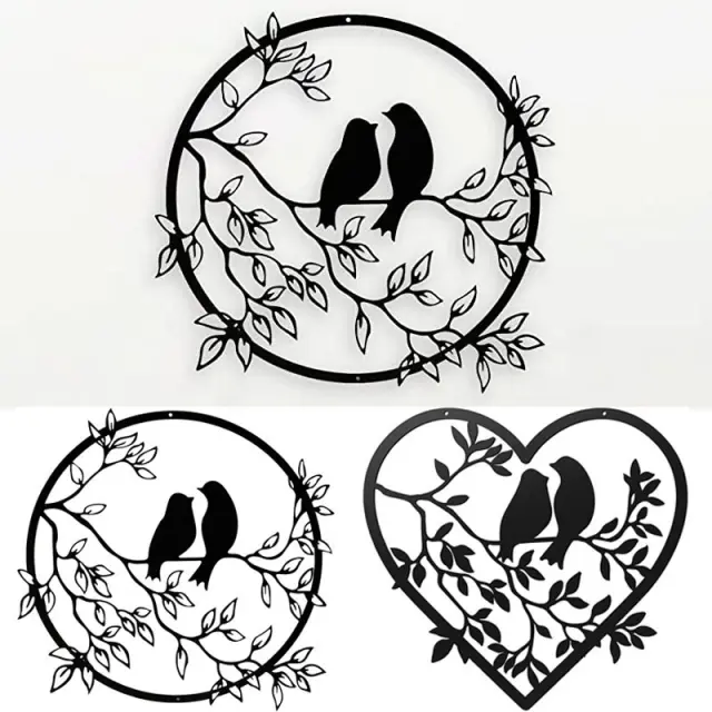 Eleganten dizajn zaljubljenih ptičkov: ta kovinska stenska umetnina prikazuje čudovito silhueto zaljubljenih ptičkov v obliki srca, ki vašemu domačemu dekorju doda pridih romantike in elegance.