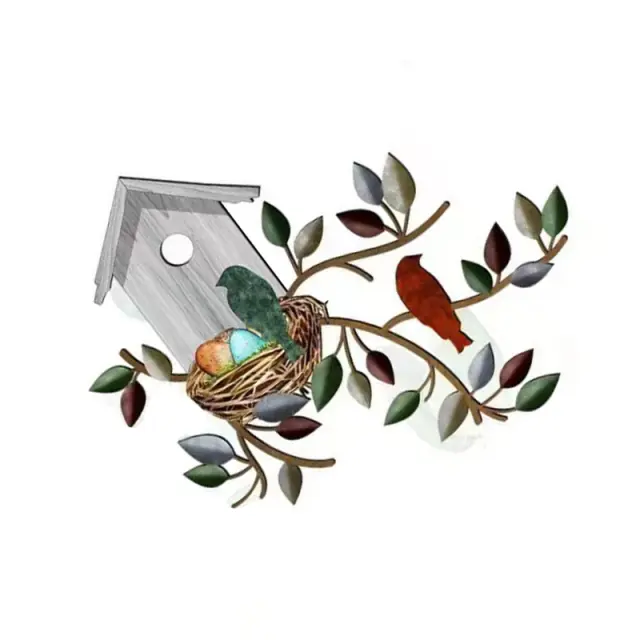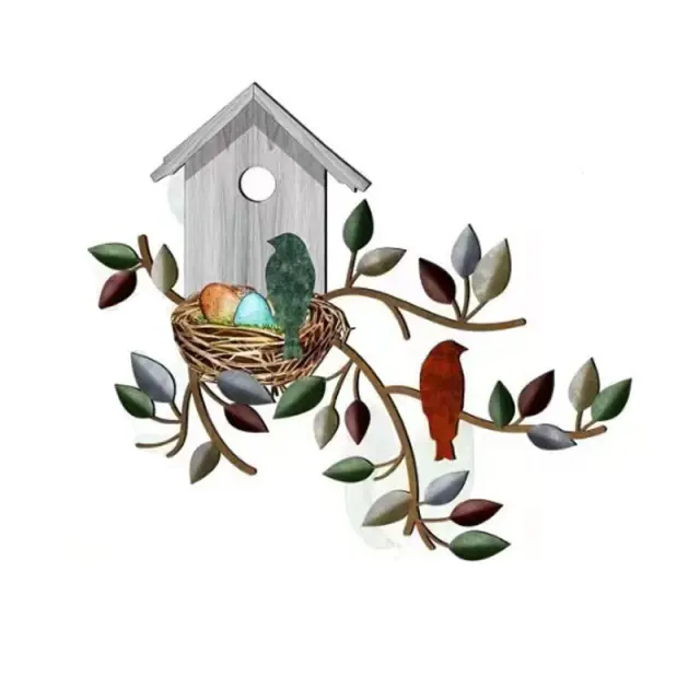 Eleganten dizajn zaljubljenih ptičkov: ta kovinska stenska umetnina prikazuje čudovito silhueto zaljubljenih ptičkov v obliki srca, ki vašemu domačemu dekorju doda pridih romantike in elegance.