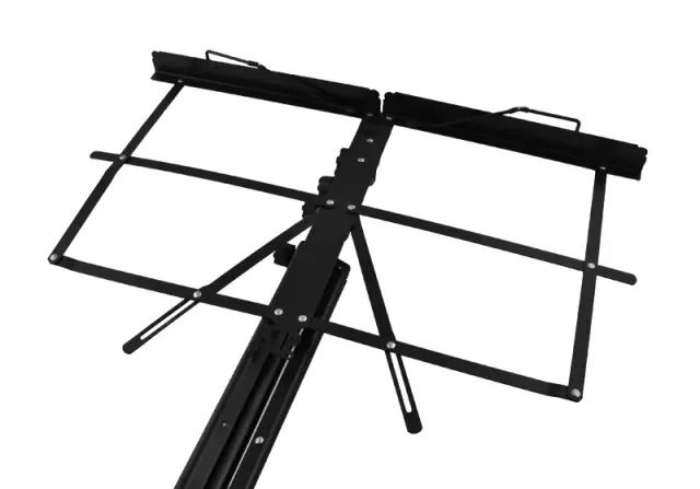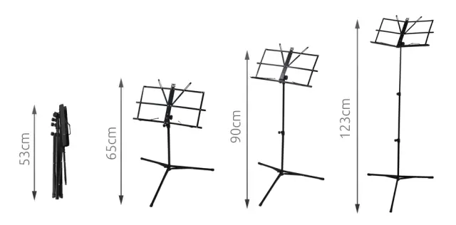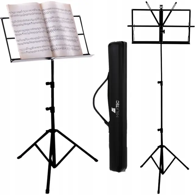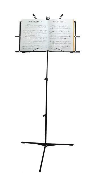 Prašno lakirano kovinsko stojalo za note. Ima trikrako podlago in nastavljivo višino. Namizje je zložljivo. Stativ priporočamo tako profesionalcem kot amaterjem.
