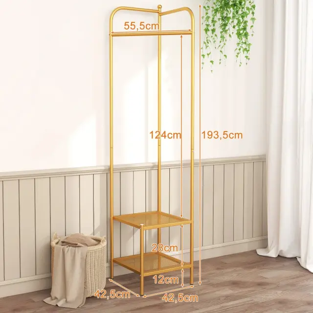 Kovinsko vogalno stojalo za plašče z zgornjim kavljem Prostostoječe stojalo za plašče Zlato
