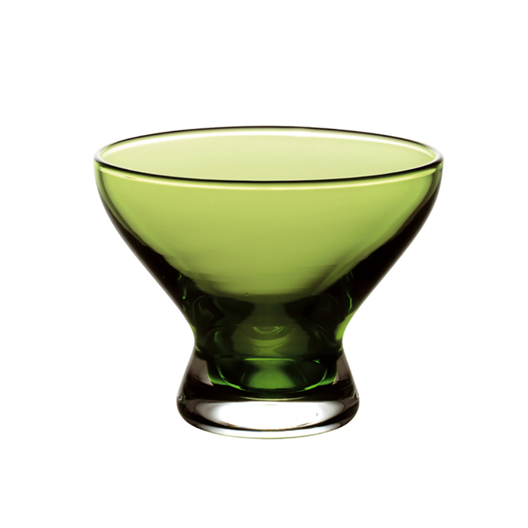 Kozarec za sladoled imenovan Nadia Ice je izdelan iz zeleno obarvanega stekla z elegantnim in sodobnim dizajnom. Oblika kozarca je široka zgoraj in se proti dnu zožuje, kar mu daje stabilnost in estetsko privlačnost. Steklo je prosojno in svetleče, kar poudarja njegovo kakovost. Kozarec je namenjen postrežbi sladoleda, sadnih kup in drugih sladic. Primeren je za pomivanje v pomivalnem stroju.