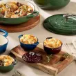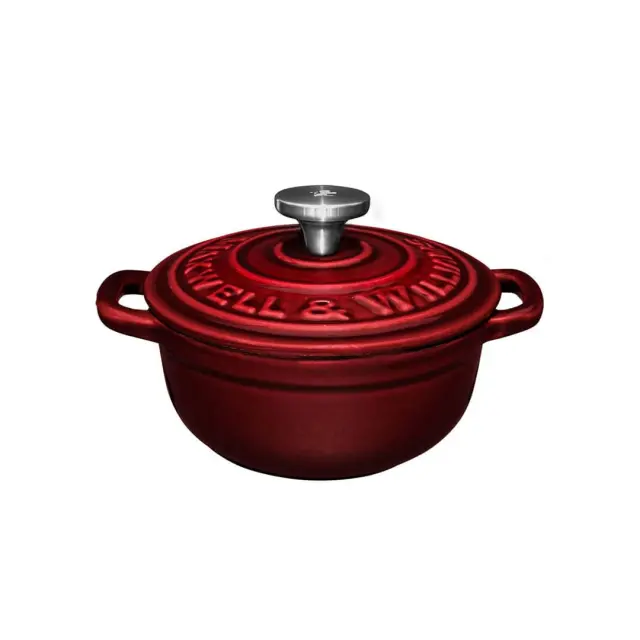 Mini kozica iz litega železa Maxwell & Williams združuje brezčasno eleganco in vrhunsko funkcionalnost, ki navduši tako pri kuhanju kot pri postrežbi. Izdelana je iz kakovostnega avstralskega litega železa, ki zagotavlja izjemno zadrževanje toplote in enakomerno porazdelitev, njena emajlirana notranjost pa omogoča enostavno čiščenje ter preprečuje prijemanje hrane. Zasnovana je za vsestransko uporabo – primerna za vse vrste kuhalnih površin, vključno z indukcijo, ter za uporabo v pečici (do 200 °C) in neposredno na mizi. Tesno prilegajoč se pokrov s kondenzacijskimi vozlički poskrbi, da se vlaga enakomerno vrača nazaj na jed, kar ohranja sočnost, bogat okus in popolno teksturo vsakega obroka. Model Merlot s premerom 9,5 cm in prostornino 260 ml je idealen za pripravo manjših porcij. Bordo odtenek doda kuhinji pridih prefinjenosti, hkrati pa trpežna izdelava zagotavlja dolgo življenjsko dobo. Posoda je zapakirana v lični darilni škatli, zato je odlična izbira za darilo ali razvajanje domače kuhinje. Ni primerna za uporabo v mikrovalovni pečici in pomivanje v pomivalnem stroju. Pri prenašanju posode vedno uporabite debelo kuhinjsko krpo ali kuhinjske rokavice.