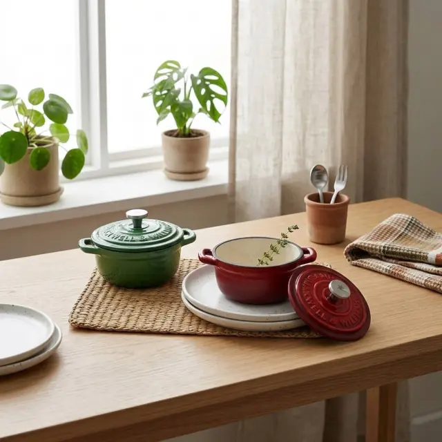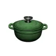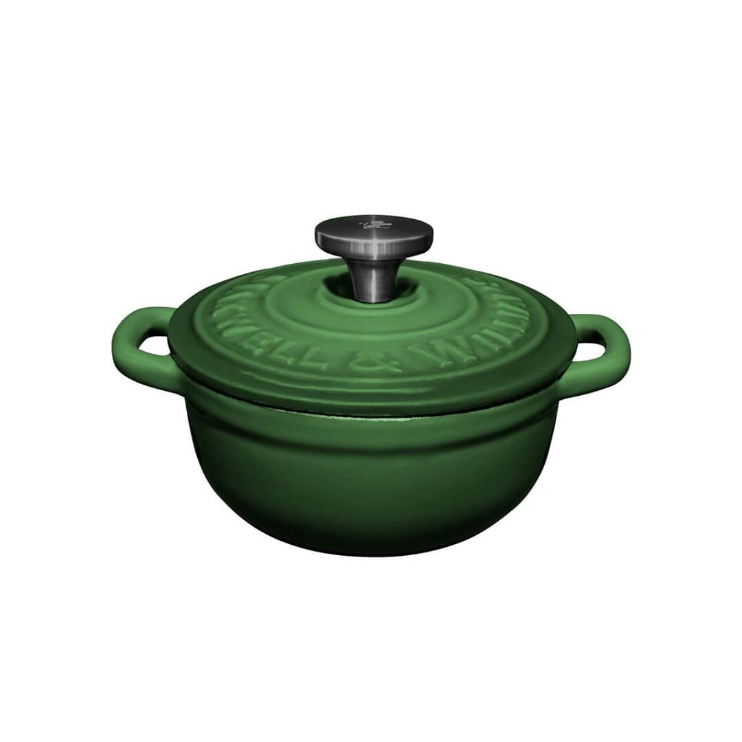 Mini kozica iz litega železa Maxwell & Williams združuje brezčasno eleganco in vrhunsko funkcionalnost, ki navduši tako pri kuhanju kot pri postrežbi. Izdelana je iz kakovostnega avstralskega litega železa, ki zagotavlja izjemno zadrževanje toplote in enakomerno porazdelitev, njena emajlirana notranjost pa omogoča enostavno čiščenje ter preprečuje prijemanje hrane. Zasnovana je za vsestransko uporabo – primerna za vse vrste kuhalnih površin, vključno z indukcijo, ter za uporabo v pečici (do 200 °C) in neposredno na mizi. Tesno prilegajoč se pokrov s kondenzacijskimi vozlički poskrbi, da se vlaga enakomerno vrača nazaj na jed, kar ohranja sočnost, bogat okus in popolno teksturo vsakega obroka. Model English Racing Green s premerom 9,5 cm in prostornino 260 ml je idealen za pripravo manjših porcij. Zelen odtenek doda kuhinji pridih prefinjenosti, hkrati pa trpežna izdelava zagotavlja dolgo življenjsko dobo. Posoda je zapakirana v lični darilni škatli, zato je odlična izbira za darilo ali razvajanje domače kuhinje. Ni primerna za uporabo v mikrovalovni pečici in pomivanje v pomivalnem stroju. Pri prenašanju posode vedno uporabite debelo kuhinjsko krpo ali kuhinjske rokavice.
