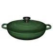 Posoda iz litega železa Maxwell & Williams združuje brezčasno eleganco in vrhunsko funkcionalnost, ki navduši tako pri kuhanju kot pri postrežbi. Izdelana je iz kakovostnega avstralskega litega železa, ki zagotavlja izjemno zadrževanje toplote in enakomerno porazdelitev, njena emajlirana notranjost pa omogoča enostavno čiščenje ter preprečuje prijemanje hrane. Zasnovana je za vsestransko uporabo – primerna za vse vrste kuhalnih površin, vključno z indukcijo, ter za uporabo v pečici (do 200 °C) in neposredno na mizi. Tesno prilegajoč se pokrov s kondenzacijskimi vozlički poskrbi, da se vlaga enakomerno vrača nazaj na jed, kar ohranja sočnost, bogat okus in popolno teksturo vsakega obroka. Model English Racing Green s premerom 27 cm in prostornino 3,2 l je idealen za pripravo enolončnic, pečenk in drugih počasi kuhanih jedi. Zelen odtenek doda kuhinji pridih prefinjenosti, hkrati pa trpežna izdelava zagotavlja dolgo življenjsko dobo. Posoda je zapakirana v lični darilni škatli, zato je odlična izbira za darilo ali razvajanje domače kuhinje. Ni primerna za uporabo v mikrovalovni pečici in pomivanje v pomivalnem stroju. Pri prenašanju posode vedno uporabite debelo kuhinjsko krpo ali kuhinjske rokavice.
