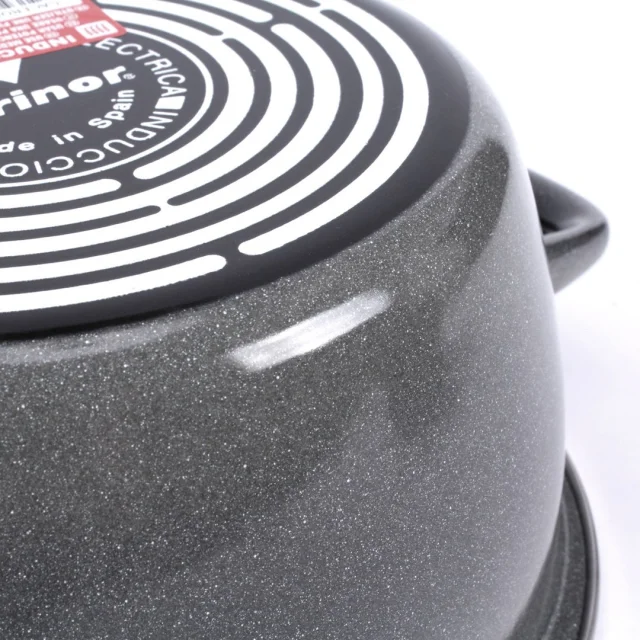 VITRINOR KOZICA s premerom 28 cm in dvema ročajema sodi v lepo in elegantno linijo kuhinjske posode K2 iz sivega emajliranega jekla, izdelanega v Španiji (Vitrinor). Prednost posode iz emajliranega jekla je predvsem njena učinkovitost, saj za kuhanje potrebuje do 30 % manj toplotne energije v primerjavi s posodo iz drugih materialov.