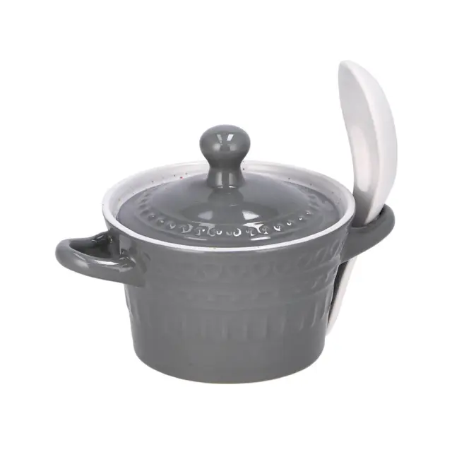 Prikupna keramična kozica Soup s pokrovom in keramično žličko je praktičen in estetski dodatek za vašo kuhinjo. S prostornino 180 ml je idealna za serviranje juh, enolončnic, golažev, omak, prelivov in enoporcijskih jedi. Zahvaljujoč pokrovu ostanejo vsebine tople in sveže, žlička pa omogoča enostavno in priročno uporabo. Na voljo je v več barvnih različicah, ki se bodo popolnoma podale k vaši kuhinjski opremi. Ta keramična kozica je odlična izbira tako za vsakodnevno uporabo kot za posebne priložnosti. Primerna je za uporabo v mikrovalovni pečici, tradicionalni pečici in pomivanje v pomivalnem stroju.