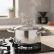 Kozica Madeira premera 16 cm je izdelana iz nerjavečega jekla 18/8, ki zagotavlja dolgo življenjsko dobo, odlično toplotno prevodnost in enostavno čiščenje. Njeno troslojno dno, debeline 3 mm, enakomerno porazdeli toploto in preprečuje pregrevanje, kar omogoča optimalne rezultate kuhanja pri vseh vrstah jedi. Kozica je primerna za vse kuhalne površine, vključno z indukcijskimi ploščami, zato je idealna izbira za vsako kuhinjo. Steklen pokrov z obodom iz nerjavečega jekla in debeline 4 mm ima odprtino za izpust pare, kar omogoča nadzor nad kuhanjem. Kozica je primerna za pomivanje v pomivalnem stroju in uporabo v pečici do 250 °C.