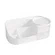 Prostoru prijazna zasnova: Kompaktna in vertikalna zasnova te škatle za shranjevanje pomaga maksimirati prostor na pultu, hkrati pa so vaši kozmetični izdelki zlahka dostopni. Njen eleganten profil se neopazno zlije z vsako kopalniško ali spalniško opremo.