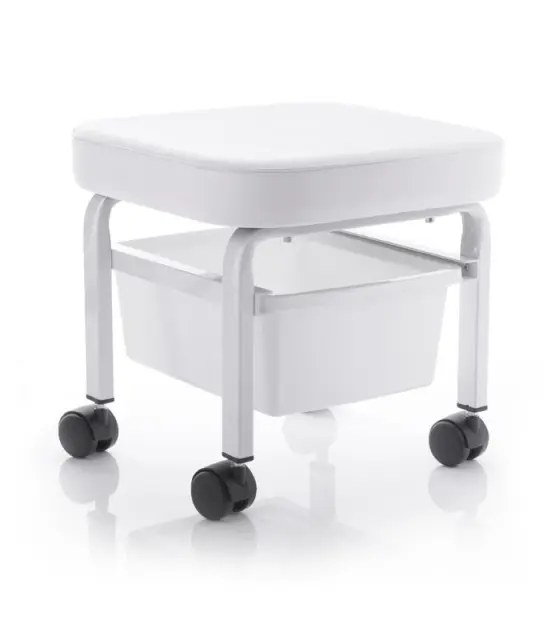 Tabure je namenjen pedikuri. Opremljen je z izvlečno posodo, v katero lahko shranite priročne pripomočke. Posoda se lahko uporablja tudi kot posoda za namakanje nog. Tehnični podatki: - višina 33cm - dimenzije sedeža 36x36 cm - teža ~4,2 kg