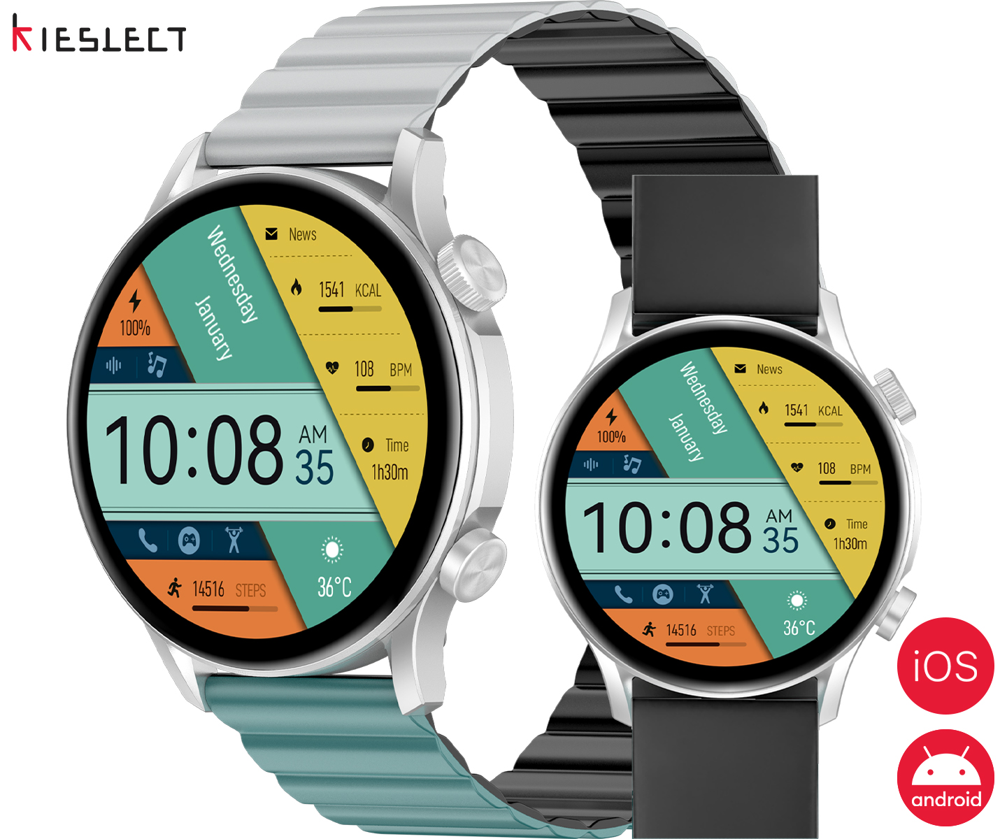 • Aplikacija KIE OS - Aplikacija KIE OS za vse mobilne naprave, ki je na voljo za Android in iOS, je zasnovana tako, da zadovoljuje širok spekter osebnih zahtev glede nadzora nad zdravjem, ogleda telesne pripravljenosti in spremljanja aktivnosti.