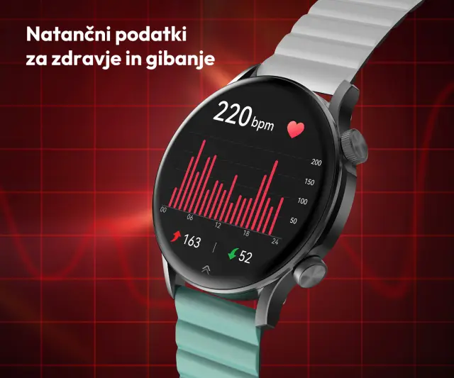 24/7 spremljanje zdravja – merjenje utripa, kisika v krvi, analiza spanja, štetje korakov, poraba kalorij, in še več…