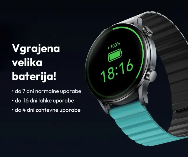 • Velika baterija, dolga uporaba - Z izboljšano 300mAh polnilno baterijo zagotavlja nemoteno uporabo do enega tedna pri vsakodnevnih aktivnostih. Poslovite se od nevšečnosti vsakodnevnega polnjenja in uživajte v funkcijah svoje pametne ure!