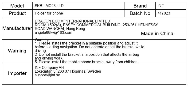 Opozorilo 1. Pred začetkom navigacije namestite nosilec na ustrezen položaj in ga prilagodite. Nosilca ne uporabljajte ali nastavljajte med vožnjo. 2. Ne nameščajte nosilca v položaj, ki vpliva na zračno blazino in vožnjo. 5. Nosilec za mobilni telefon namestite stran od otrok.