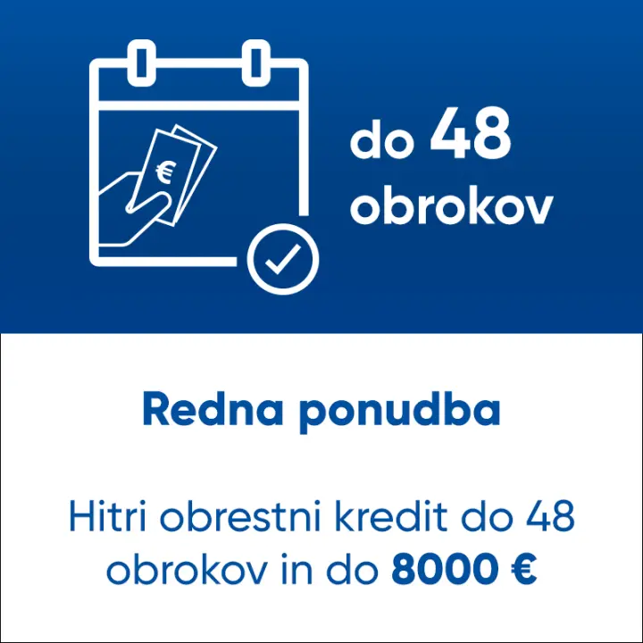 Hitro in enostavno do obročnega nakupa! Za nakupe v vrednosti med 100 in 8000 evrov lahko v naših poslovalnicah sklenete hitri kredit za poljubno števil obrokov. S seboj potrebujete osebni dokument, bančno kartico, davčno številko in dokazilo o rednem prihodku.