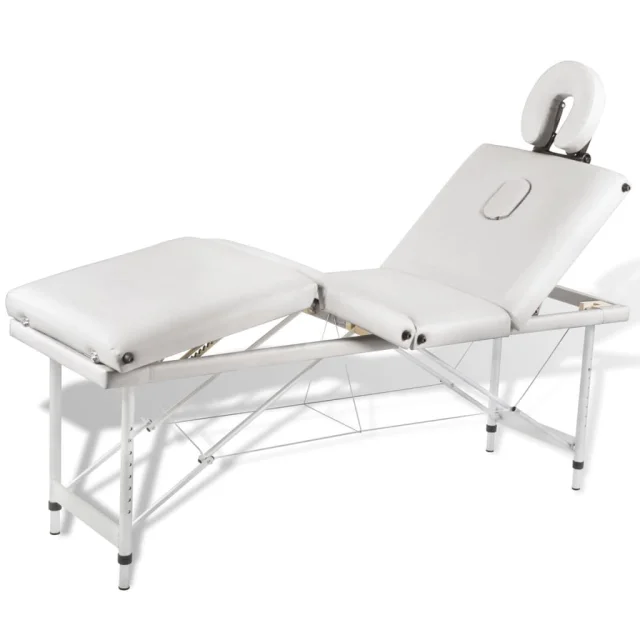 Krem bela masažna miza s 4 območji in aluminjastim okvirjem - Masažna Miza