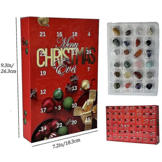 Kristali 2025, božični adventni koledar, 24-dnevna darilna škatla iz naravnega kamna Darilo naravne zbirke za navdušence joge in geologije