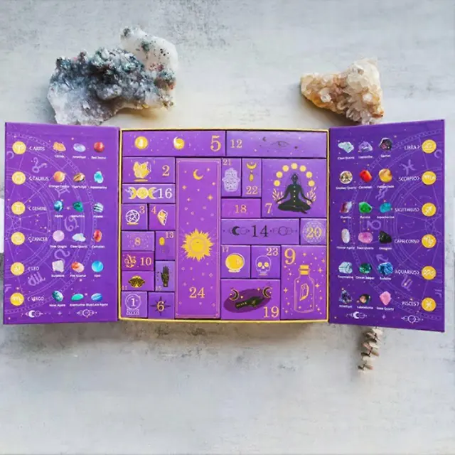 Kristali za noč čarovnic Adventni koledar za duhovno zdravljenje Dnevna odštevalna škatla z naravnimi zdravilnimi kristali za ženske