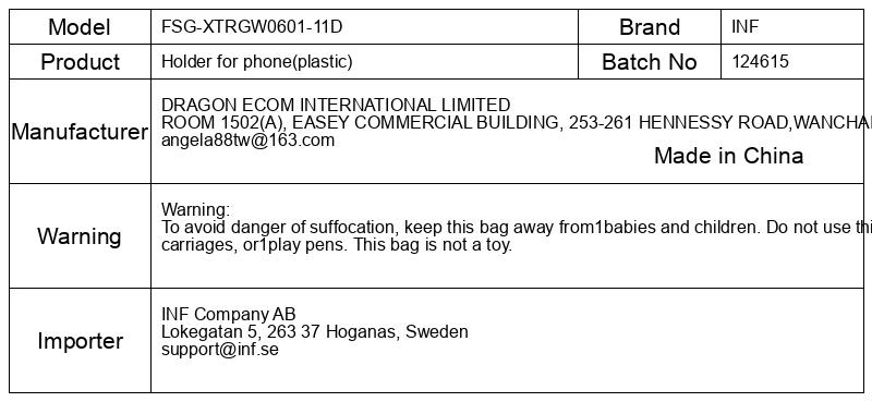 Opozorilo: Da bi se izognili nevarnosti zadušitve, vrečko hranite izven dosega dojenčkov in otrok. Vrečke ne uporabljajte v otroških posteljicah, vozičkih ali igralih. Ta vreča ni igrača.
