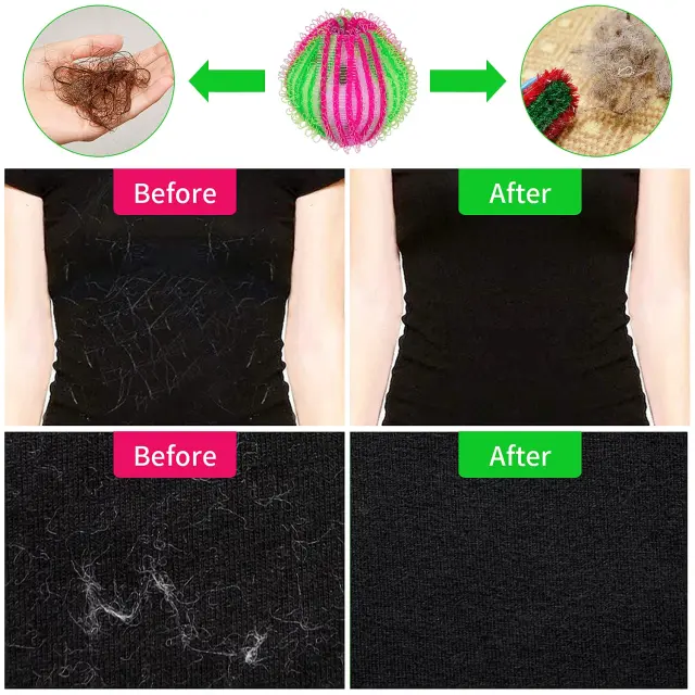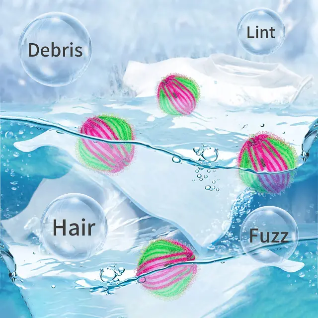 Učinkovit odstranjevalec dlake: Kroglice za perilo so narejene iz gobastega materiala, ki učinkovito vpije dlako hišnih ljubljenčkov, dlake, nitke, kosme in vlakna na oblačilih. Skozi trenje z oblačilom se zberejo dlake in podobno in dobite čista in sveža oblačila.