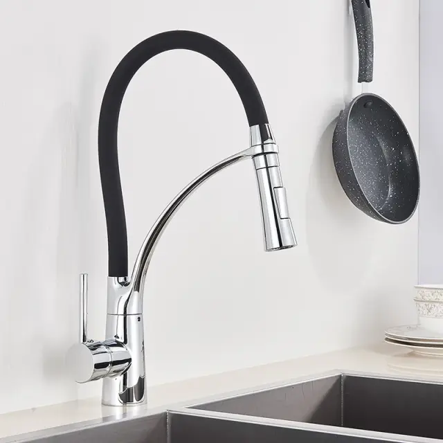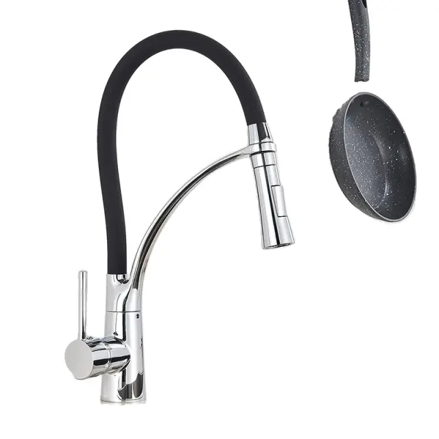 • Fleksibilna zasnova izliva: Fleksibilen izliv omogoča enostavno manevriranje in vsestranskost pri doseganju vseh predelov vašega korita, kar povečuje učinkovitost vaše kuhinje.