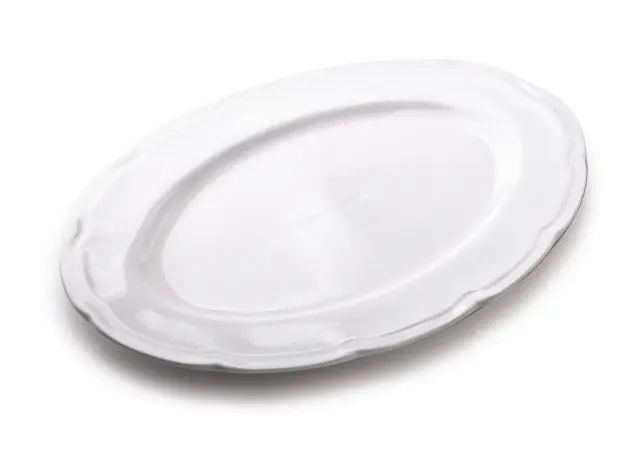 Krožnik HELLA 30x21xh2,4cm Kolekcija HELLA klasičnega porcelana AFFEKDESIGN by MONDEX. Ovalni krožnik z rahlim okrasom na obodu, klasične oblike, oblike in bele barve. Proizvajalec: MONDEX Blagovna znamka: AFFEKDESIGN by MONDEX Serija: HELLA Material: NBC porcelan Barva: bela Primerna za pomivanje v pomivalnem stroju: Da Embalaža: brez posamičnega pakiranja Idealna tako za vsakdanjo uporabo kot za posebne priložnosti HELLA se bo odlično podala v skoraj vsak interier Servis klasične oblike združuje preprostost in eleganco Primerna za mikrovalovno pečico Primerna za pomivalni stroj Teža: 479 g brez posamičnega pakiranjaner 6 kosov v razsutem stanju 24 kosovNovost kostnega porcelana