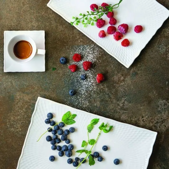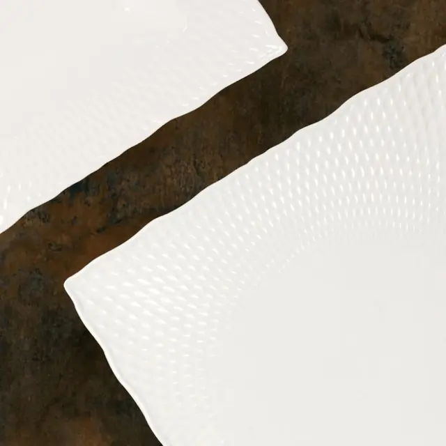 Pravokoten krožnik iz linije Oniros dimenzij 30,5x21,5 cm, je navdahnjen z grškim božanstvom sanj s fascinantnim optičnim učinkom svetlobe in senc, ki ga ustvari hipnotična zasnova površine. Krožnik je izdelan iz porcelana Alumina.Gre za vrsto porcelana obogatenega z aluminijem, ki predstavlja 34 % vsebnosti aluminijevega oksida, kar poveča trdoto materiala in njegovo odpornost na udarce in praske, poleg tega pa ima izjemne mehanske in kemične lastnosti. Prenese zelo visoke temperature, zato je krožnik primeren za uporabo v mikrovalovni pečici in za pomivanje v pomivalnem stroju.
