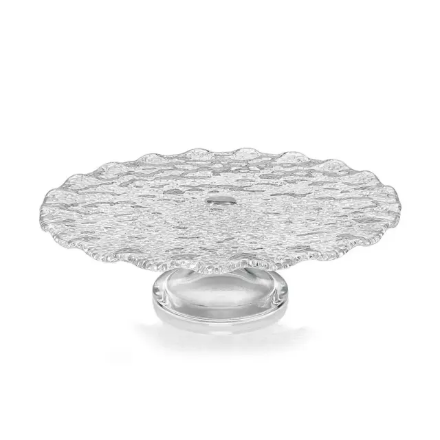 Krožnik na podstavku Special s premerom 26 cm in višino 9,5 cm združuje eleganten videz in ročno izdelano kakovost. Izdelan je iz stekla, njegova zunanja površina pa reproducira poseben vzorec, ki ustvarja rahlo nepravilno teksturo. Ta detajl daje krožniku izrazit sijaj in prijeten občutek na dotik, hkrati pa poudari njegov dekorativen značaj. Idealen je za serviranje peciva, tort, kolačev ali drugih sladkih dobrot, ki jih želite predstaviti na eleganten način. Krožnik lahko služi tudi kot funkcionalen servirni kos in kot estetski poudarek na mizi. Priporočamo nežno ročno pomivanje, da se ohrani njegova lepota in kakovost.