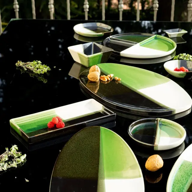 Krožnik Simposio s pravokotno obliko in dvignjenim robom omogoča elegantno postrežbo jedi z omakami, predjedi, prigrizke, priloge in sladice. Izdelan je iz kakovostne keramike (Stoneware), žgane pri zelo visokih temperaturah, kar mu daje izjemno trdnost, odpornost na udarce in dolgotrajno obstojnost. Krožnik združuje sodoben dizajn z naravno toplino materiala, zato se lepo poda tako k vsakodnevni kot tudi bolj svečano pogrnjeni mizi. Primeren je za pomivanje v pomivalnem stroju in uporabo v mikrovalovni pečici.