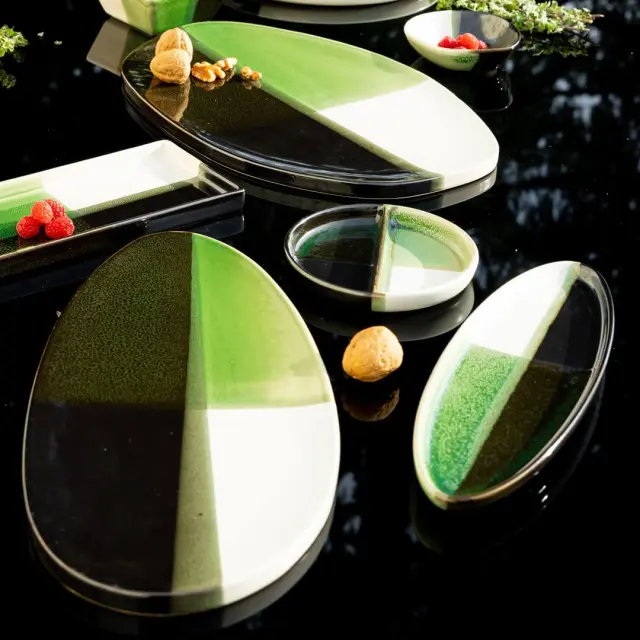 Krožnik Simposio 40,5x19cm / ovalen / zelen / keramika