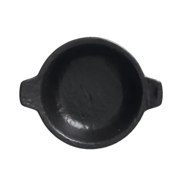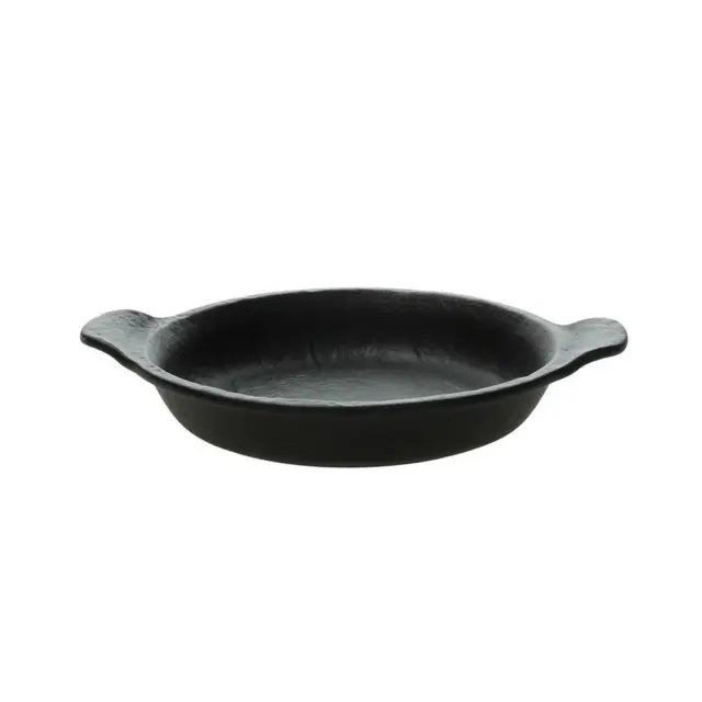 Zahvaljujoč posebnemu porcelanastemu zaključku kolekcija Vulcania Black poustvarja učinek ohlajene lave s črno teksturo, podobno skrilavcu. Zanjo so značilne izrazite linije in nepolirana površina, zato je bil zasnovana za ljubitelje grobega dizajna z močnim vizualnim učinkom. Linija vsebuje vse, kar potrebujete za predstavitev in serviranje vaših najljubših jedi, saj črn porcelan poudari barvo in teksturo hrane. Okrogel krožnik premera 15 cm in robom višine 3 cm, je primeren za vsakdanjo ali profesionalno rabo v restavracijah. Krožnik v obliki ponve z dvema ročajema je izdelan iz kakovostnega porcelana, ki je primeren za uporabo v mikrovalovni pečici in pomivanje v pomivalnem stroju. Njegova prostornina meri 270 ml. Primeren je za uporabo v mikrovalovni pečici in pomivanje v pomivalnem stroju. Lahko ga kombinirate še z ostalimi izdelki iz iste linije Vulcania Black.