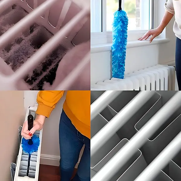 Popolno orodje za čiščenje notranjosti in zunanjosti radiatorja ter drugih površin, ki jih je težko očistiti.