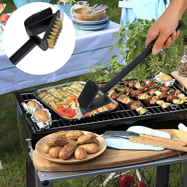 3-v-1 ščetka za žar: ščetka za čiščenje žara je 3-v-1 ščetka za žar, s čopičem zlahka odstranite madeže in usedline na žaru, strgalo pa lahko temeljito in učinkovito očisti trdovratne madeže. Preprost in praktičen, je najboljše čistilno orodje za vaše piknike in žare na prostem.