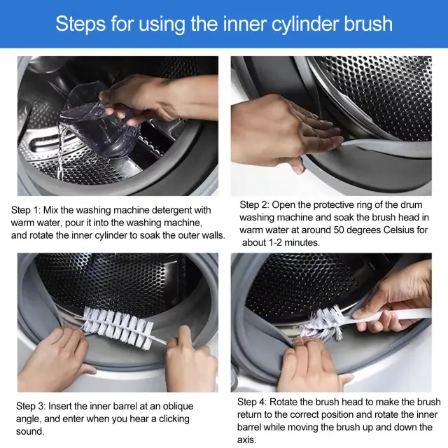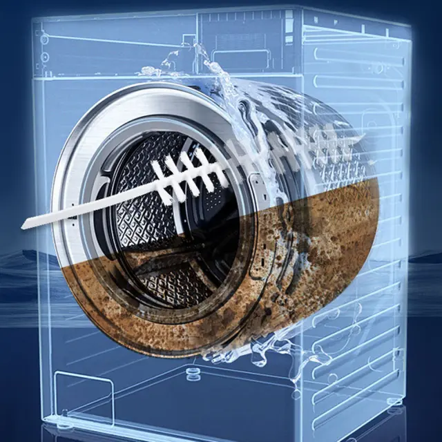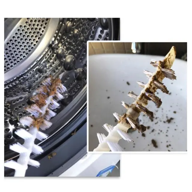 Učinkovito čiščenje pralnega stroja: Ščetka je zasnovana posebej za čiščenje notranjega bobna pralnega stroja. Močne krtače zagotavljajo temeljito odstranjevanje umazanije, kosmov in ostankov detergenta.