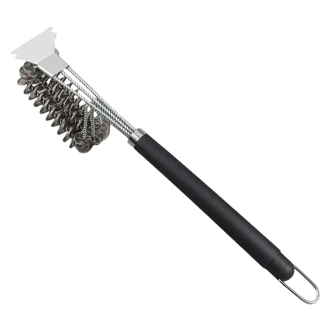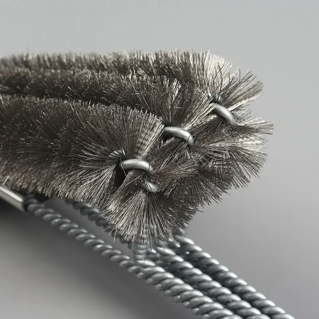 Učinkovito: hitro in enostavno čiščenje. Ta krtača za čiščenje žara BBQ ima goste jeklene ščetine in dolg ročaj, ki omogoča enostavno in hitro odstranjevanje maščobe in umazanije s površin žara.