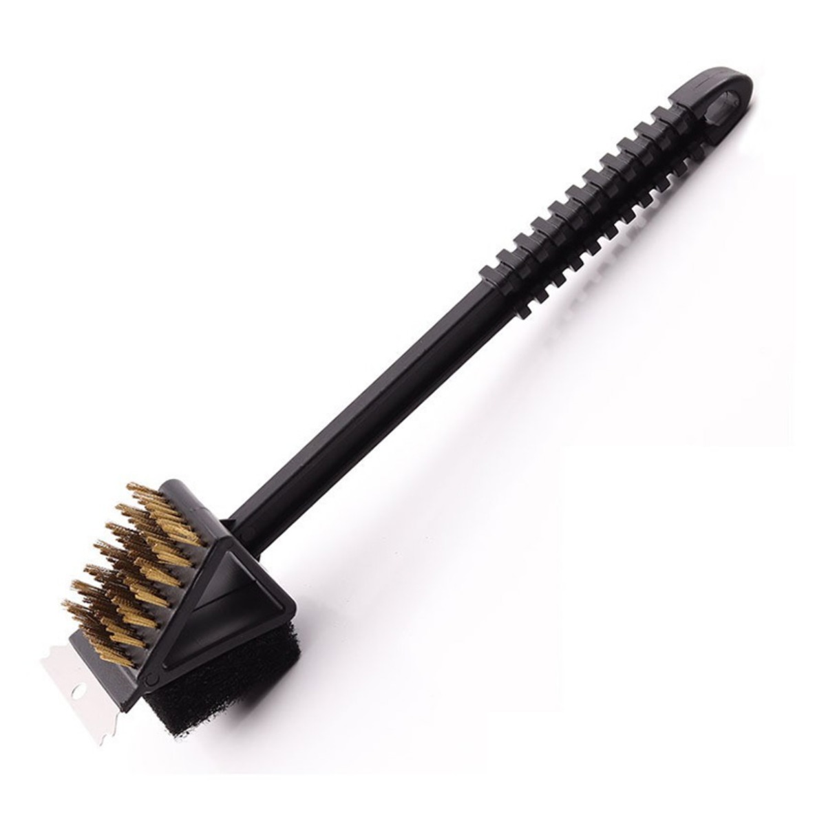 Značilnost: 14,5-palčna 3-v-1 krtača za žar z dolgim ročajem, bakrena žica, krtača za žar, krtača za čiščenje pečice na prostem