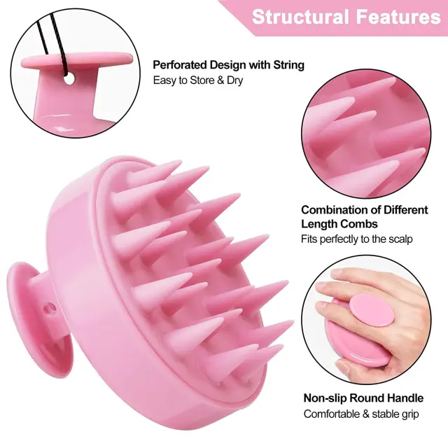 Preprečuje suho lasišče: Ta silikonska krtača je mehka, udobna in nežna do najbolj občutljivega lasišča. Zahvaljujoč oblikovanju krtače deluje proti suhemu lasišču, prhljaju in glivicam. Spodbuja se krvni obtok, kar spodbuja zdravo lasišče in rast las.