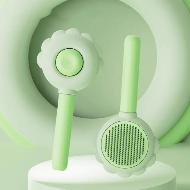 Enostaven za uporabo in čiščenje: Ta krtača za nego hišnih ljubljenčkov je zasnovana s priročnim samočistilnim gumbom. Preprosto pritisnite gumb, da umaknete ščetine in odstranite pobrane dlake. Ergonomski ročaj zagotavlja udoben oprijem za enostavno nego.