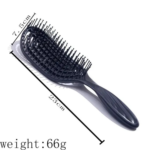 Enostavno razčesavanje: Edinstvena konfiguracija ščetin in zasnova zračne blazine omogočata, da krtača drsi skozi lase, brez truda razvozla vozle in zaplete brez vlečenja ali vleke. To zmanjša lomljenje in poškodbe, lase pa pusti gladke in obvladljive.