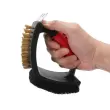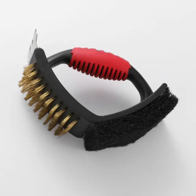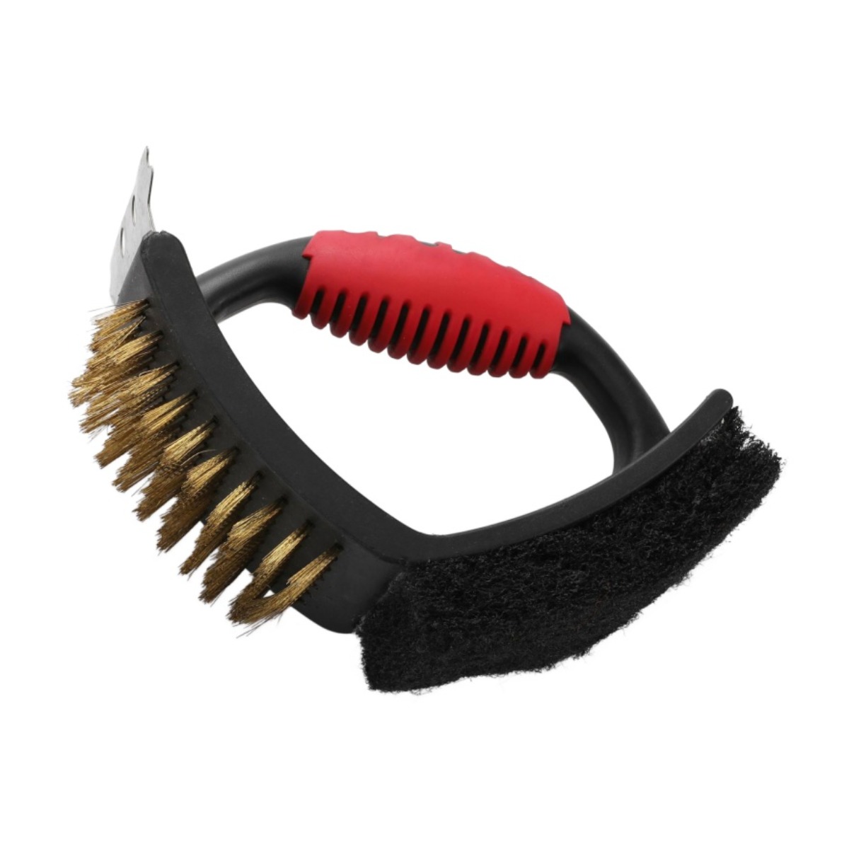 3v1 strgalo: Integrirano strgalo združuje rob za strganje, krtačenje in bakreno čistilno ploščico v enem orodju, kar omogoča zaporedno odstranjevanje večjih usedlin, nato drgnjenje in poliranje brez menjave pripomočkov. V praksi to pomeni hitrejše pospravljanje po peki, manj korakov in učinkovitejše odstranjevanje trdovratnih ostankov z rešetk, rešetk in litoželeznih površin. Orodje omogoča tekoč prehod med postopki, kar prihrani čas in zmanjša napor pri vsakodnevnem vzdrževanju.