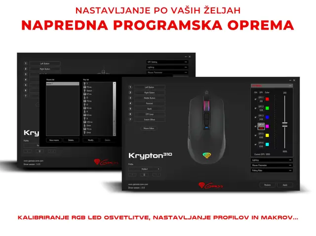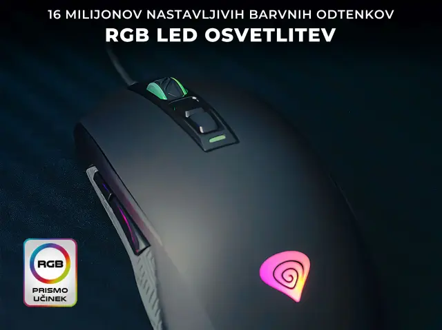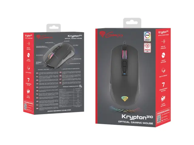 GENESIS Krypton 310 RGB LED osvetlitev, 4000dpi, 7 tipk, vgrajen spomin gaming optična miška