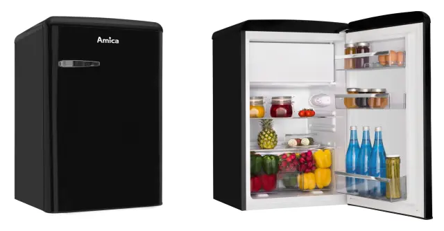 Prostostoječi retro hladilnik Amica KS15614S kljub svoji navidezni majhnosti v sebi skriva vse, kar imajo veliki. S svojo značilno in prepoznavno vintage obliko ter barvo odraža mladostni pridih nostalgije, ki se elegantno poda v prav vsako kuhinjo. Hladilnik navdušuje s samodejnim odtaljevanjem hladilnega dela, 95 litrsko prostornino hladilnega in 13 litrsko prostornino zamrzovalnega dela, dvema prostornima policama, tremi dodatnimi policami na vratih hladilnika in predalom za sadje in zelenjavo. Prijetna LED osvetlitev v notranjosti omogoča izvrsten pregled nad shranjenimi živili, ki bodo ob nenačrtovanem izpadu energije udobno shranjena še 11 ur.