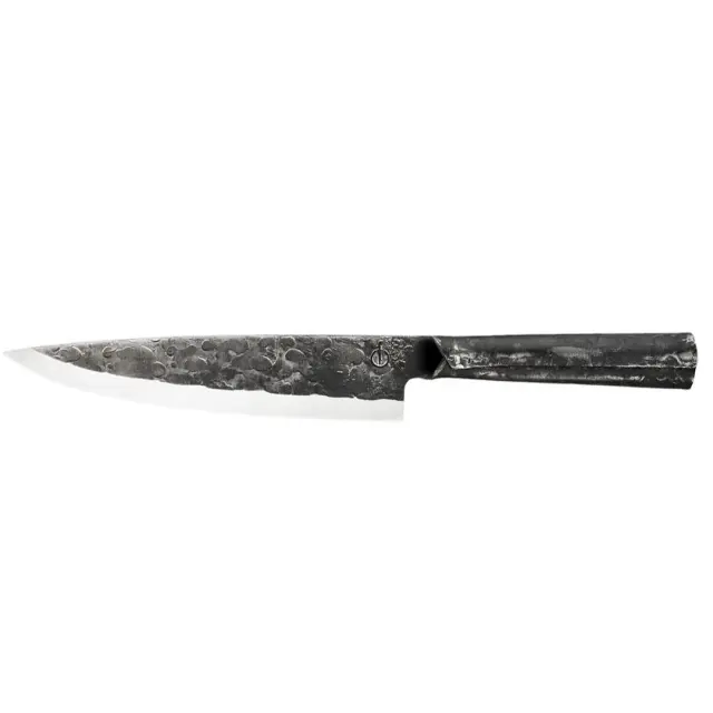 No Brute Chef je nepogrešljiv pripomoček za vsakega kuharja. Z njim boste z lahkoto rezali meso, ribe ali zelenjavo, enako pa se izkaže tudi pri finem sekljanju zelišč. Oblika rezila sledi tradiciji evropske kuhinje, kakovost in vzdržljivost pa zagotavlja japonsko jeklo 440C s trdoto 58 Rockwell. Nož iz serije Brute je ročno kovano, unikatno delo. Rezilo je dolgo 20 cm, debelo 2 mm in brušeno pod kotom 18°. Skupna dolžina noža z ročajem je 34 cm. Njegov značilen, grobo obdelan videz poudarja ročno izdelavo in daje nožu surov, avtentičen značaj. Ročaj iz valjanega nerjavečega jekla s posebno odprtino dodaja edinstven pečat, hkrati pa zagotavlja trpežnost, lahkotnost in udobno uporabo. Nož je pakiran v luksuzni leseni embalaži, zato je odlično darilo ali investicija v lastno kuhinjo. Dimenzija embalaže: 39,3x9,3x4 cm