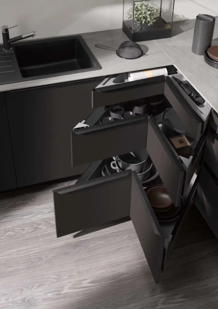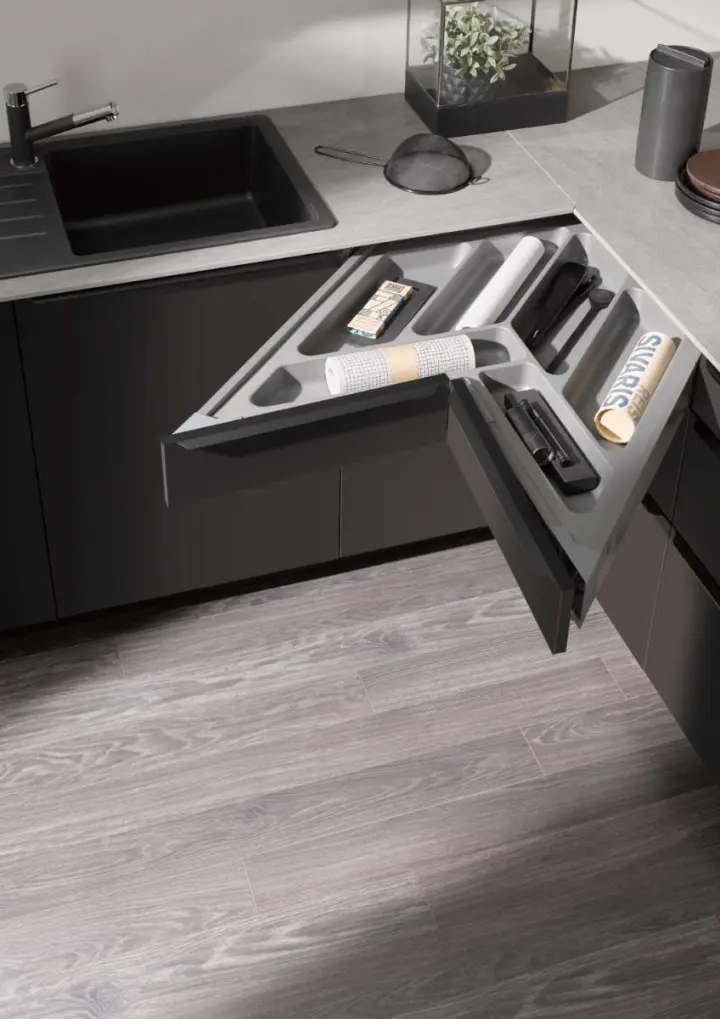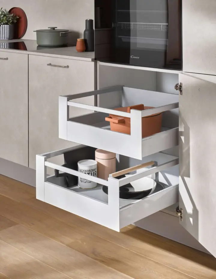 Naše kuhinje so oblikovane z mislijo na eleganco, funkcionalnost in trajnost. Ponosni smo na vsak detajl, ki naše kuhinje naredi edinstvene in izjemno uporabne. Tukaj je nekaj ključnih značilnosti, ki jih ponujamo: