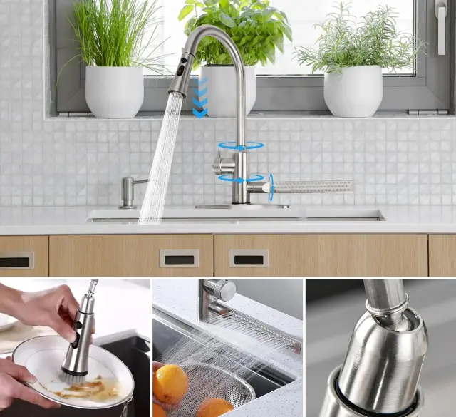 Kuhinjska armatura 4v1 združuje sodobno tehnologijo in vrhunsko funkcionalnost, ki bistveno olajša pripravo hrane ter čiščenje. S štirimi načini pretoka in robustno konstrukcijo iz nerjavečega jekla predstavlja dolgoročno investicijo v vaš dom. Izboljšajte svojo kuhinjsko izkušnjo še danes ter zagotovite svojemu gospodinjstvu maksimalno udobje in slog. Izberite kakovost, ki traja, in naročite svojo armaturo za brezskrbno vsakodnevno uporabo.