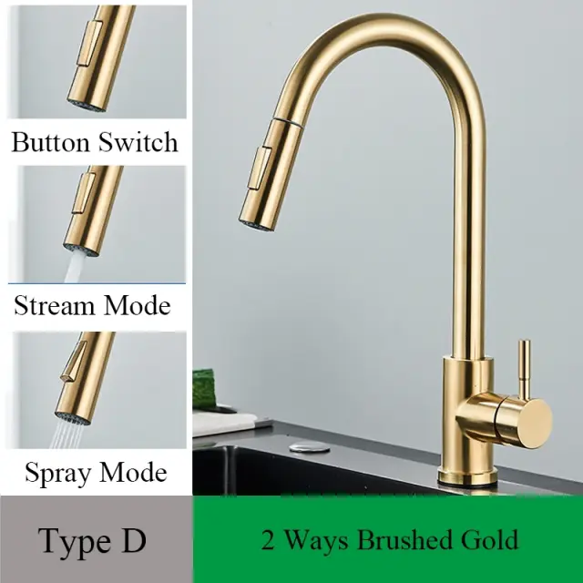 Kuhinjska pipa, 360° rotacija, izvlečna šoba, tip D brušeno zlato