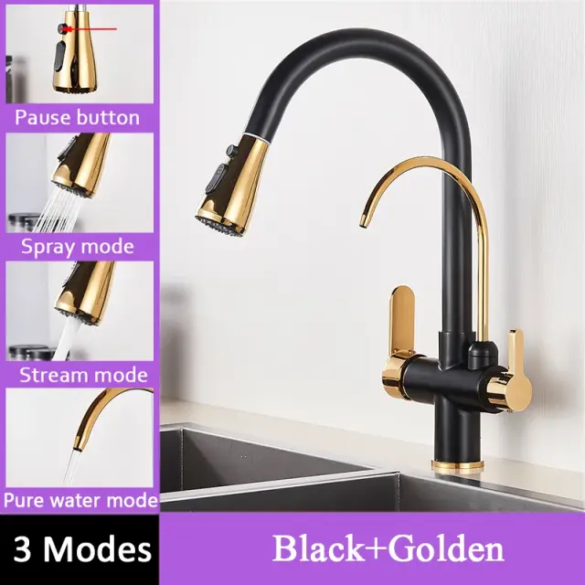 Kuhinjska pipa, 360-stopinjska rotacija, filtracija -Črno Zlato B