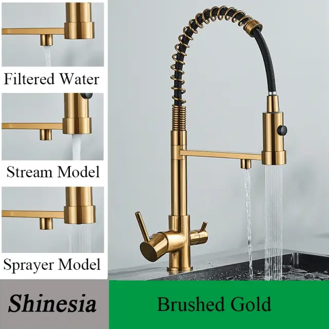 Kuhinjska pipa, filtrirana voda, medeninasta konstrukcija, brušeni zlat