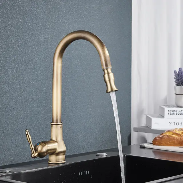 Kuhinjska pipa, končna obdelava starinskega mesinga, izvlečna šoba, starinski mesing C